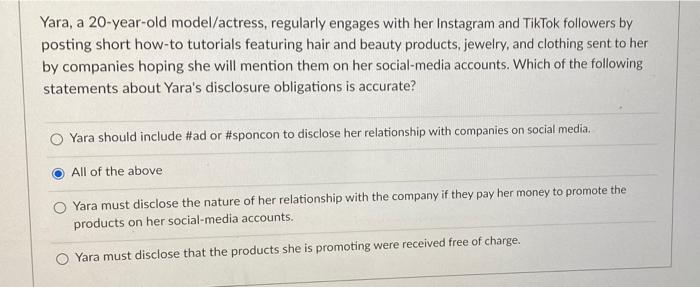 Solved Yara A 20 Year Old Model Actress Regularly Engages Chegg Com